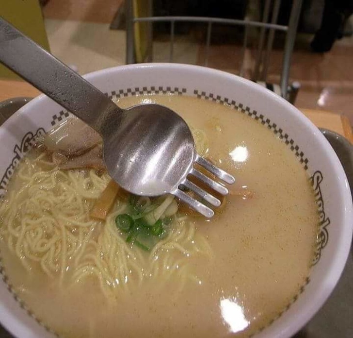 5. Načo nám je toľko príboru. Úplne ti postačí tento univerzálny kuchynský riad, ktorým dokážeš zjesť takmer akékoľvek jedlo. dokonca aj polievku s dlhými rezancami. Geniálny nápad!