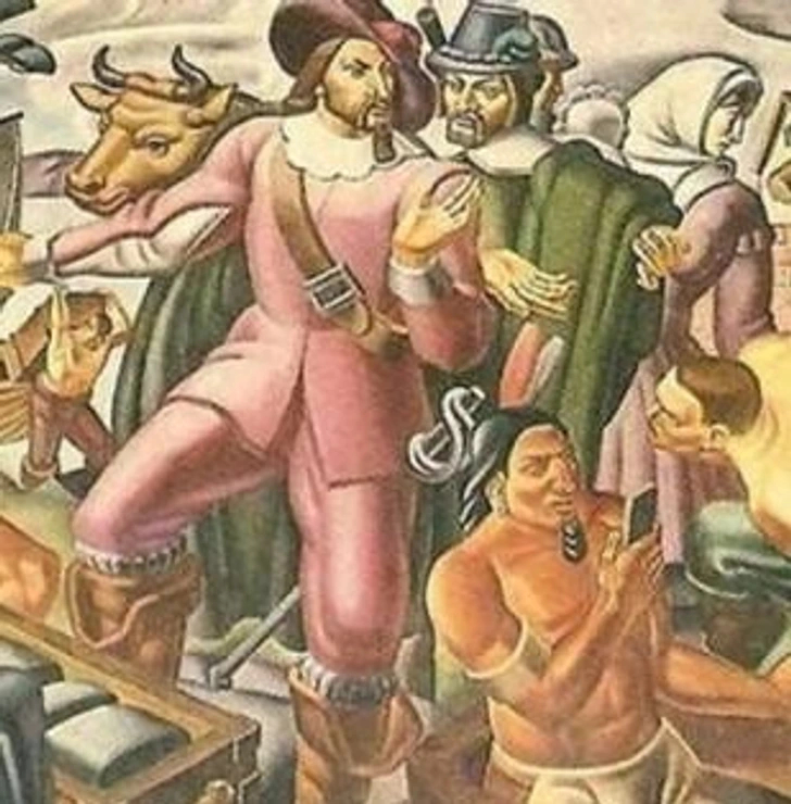 Nástenná maľba na Springfield Main Post Office, namaľovaná v roku 1937, zobrazuje príchod osadníkov do Springfieldu v 20. rokoch 17. storočia. Je tu však zvláštny detail, ktorý upúta. V chaose na scéne sa zdá, že jeden z domorodých Američanov obchodujúcich s Williamom Pynchonom hľadí na moderný predmet, ktorý sa veľmi podobá smartfónu.