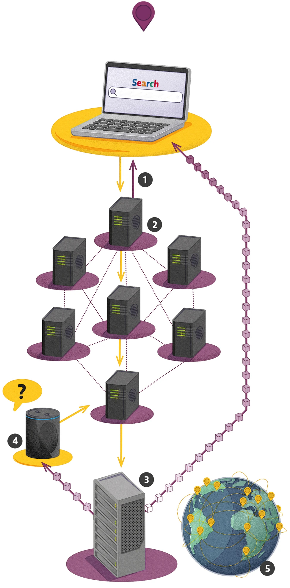 5. Celá táto komunikácia prebieha dynamicky po celom svete, pričom servery poskytujú údaje cez akékoľvek dostupné pripojenia, vďaka čomu je internet úžasne robustný.