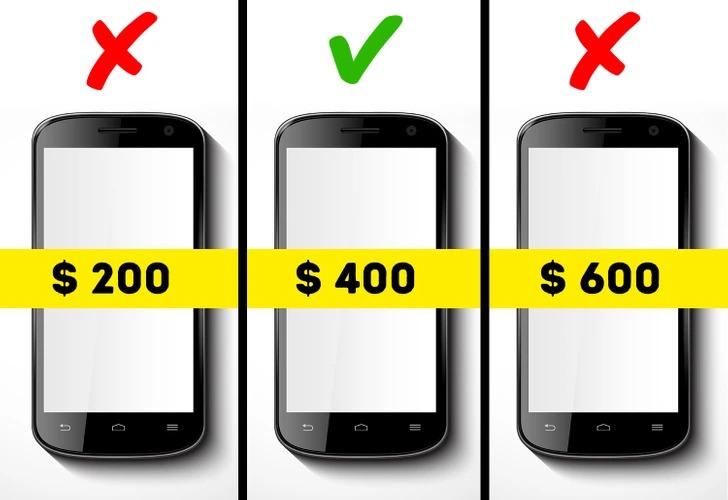 V podstate sa pokúšame racionálne minúť naše peniaze. A to je dôvod, prečo zvyčajne vyberáme výrobky s vyváženou cenou a kvalitou. To znamená, že nekupujeme ani tie najdrahšie, no ani tie najlacnejšie veci. Hoci toto správanie považujeme za primerané, je potrebné poznamenať, že obchodníci si to veľmi dobre uvedomujú. Aj preto v obchodoch nájdeme tie lacné produkty pri tých drahších a zákazník tak bez váhania siahne po lacnejšej variante.