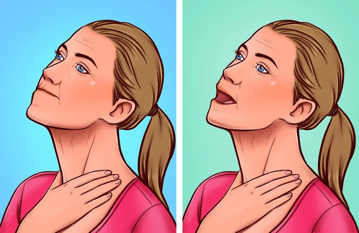 - Znova sa pozrite na strop, ale tentoraz položte pravú ruku na kľúčnu kosť a jemne zatlačte nadol.