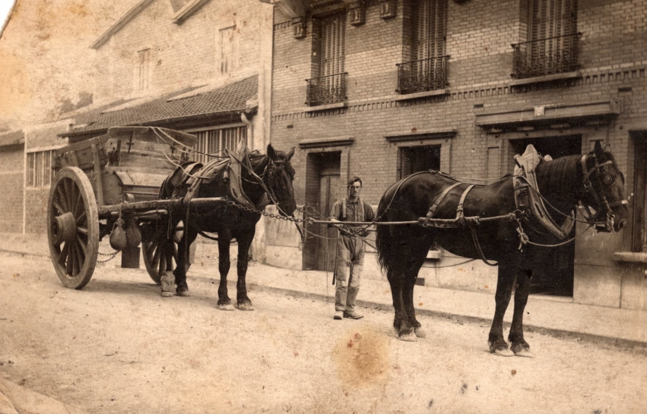 “Môj prastarý otec, Paríž (asi 1930) pózuje s kočom a koňmi, ktoré by ho utopili v Seine.”