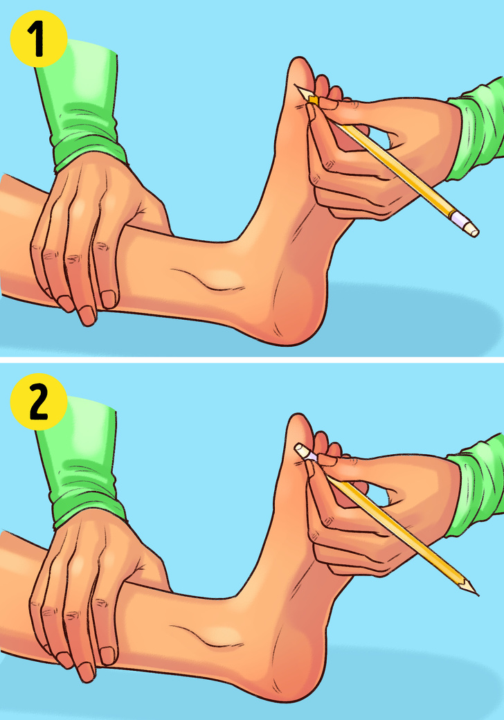 Pri tomto teste potrebuješ asistenciu. Požiadaj niekoho, aby sa spodnej strany tvojich prstov na nohe dotýkal ceruzkou. Raz ostrou stranou a potom gumou. Dokážeš rozlíšiť, kedy sa ťa dotkla ktorá strana ceruzky? Nízka citlivosť môže byť totiž ukazovateľom cukrovky.