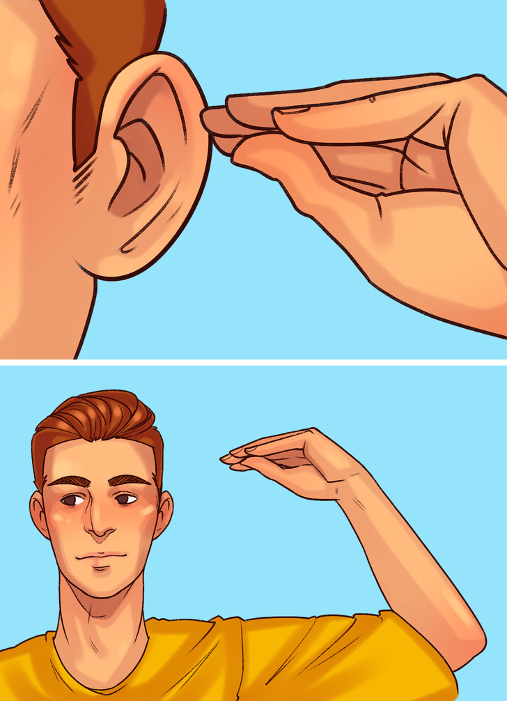 Pre tento test musíš byť v tichej miestnosti. Prilož prsty blízko k uchu a pošúchaj nimi. Počuješ zvuk? Super. Teraz daj ruku čo najďalej od ucha a opäť šúchaj prstami. Ak počuješ zvuk aj tak, máš dobrý sluch. Opakuj aj s druhým uchom.