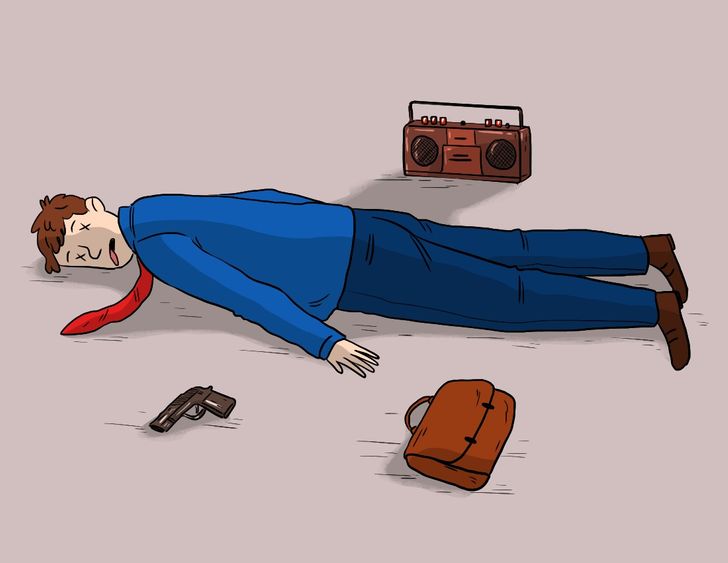 Otázka: Predstav si scénu. Muža našli mŕtveho, v ruke má pištoľ a pri sebe magnetofón. Detektív stlačil tlačidlo “Play” a vypočul si správu, v ktorej stálo: “Som unavený z tohto života a rozhodol som sa zastaviť svoju bolesť a utrpenie” a potom nasleduje výstrel. Detektív akosi neverí, že išlo o samovraždu.