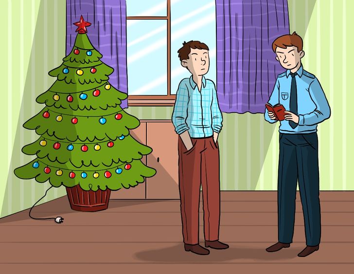 Odpoveď: Svetlá na vianočnom stromčeku sú odpojené a v skutočnosti na stromčeku chýba jedna žiarovka. Bez nej by svetlá nefungovali. Detektívovi bolo jasné, že majiteľ hovorí pravdu. Ozdobil stromček v takom zhone, že ani neskontroloval, či svetlá fungujú alebo nie.