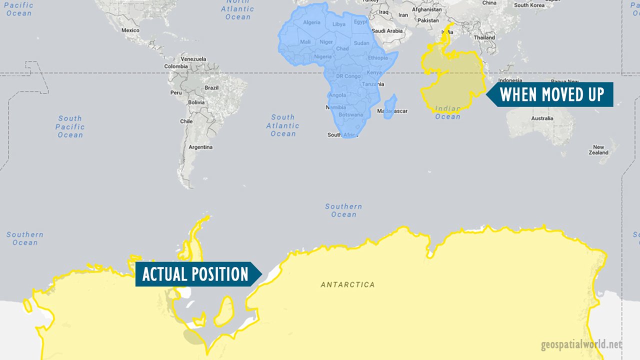 Možno vám pri týchto pokusoch napadlo, ako je na tom v skutočnosti Antarktída? Antarktída vyzerá byť obrovským kontinentom, no v skutočnosti, ak Antarktídu presunieme bližšie k Afrike zistíme, že zaberá iba polovicu Afriky.