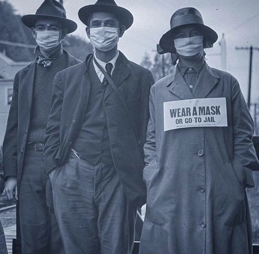 Pózovanie pre fotografiu, počas pandémie španielskej chrípky, 1918