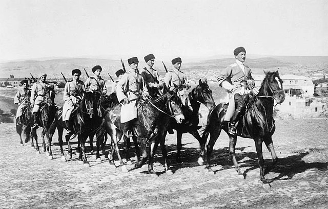 Kozácka jazdecká jednotka v pohybe na Ukrajine, 1918