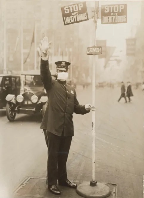 Newyorský dopravný policajt, riadenie dopravy počas španielskej chrípky