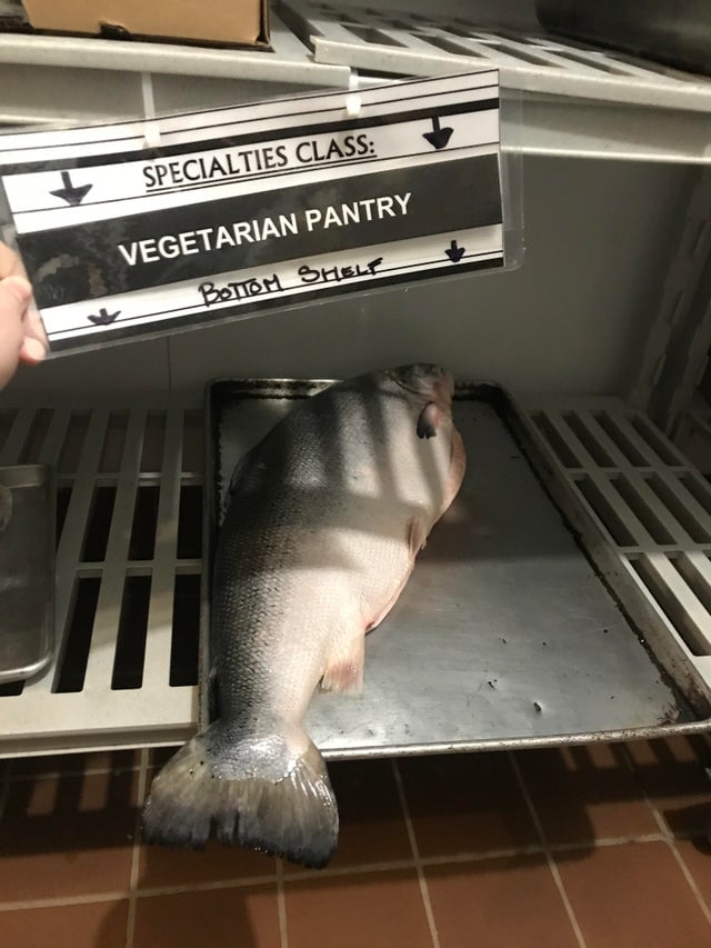 Zahliadnuté v škole. Je na tom napísané “vegetariánska špajza”