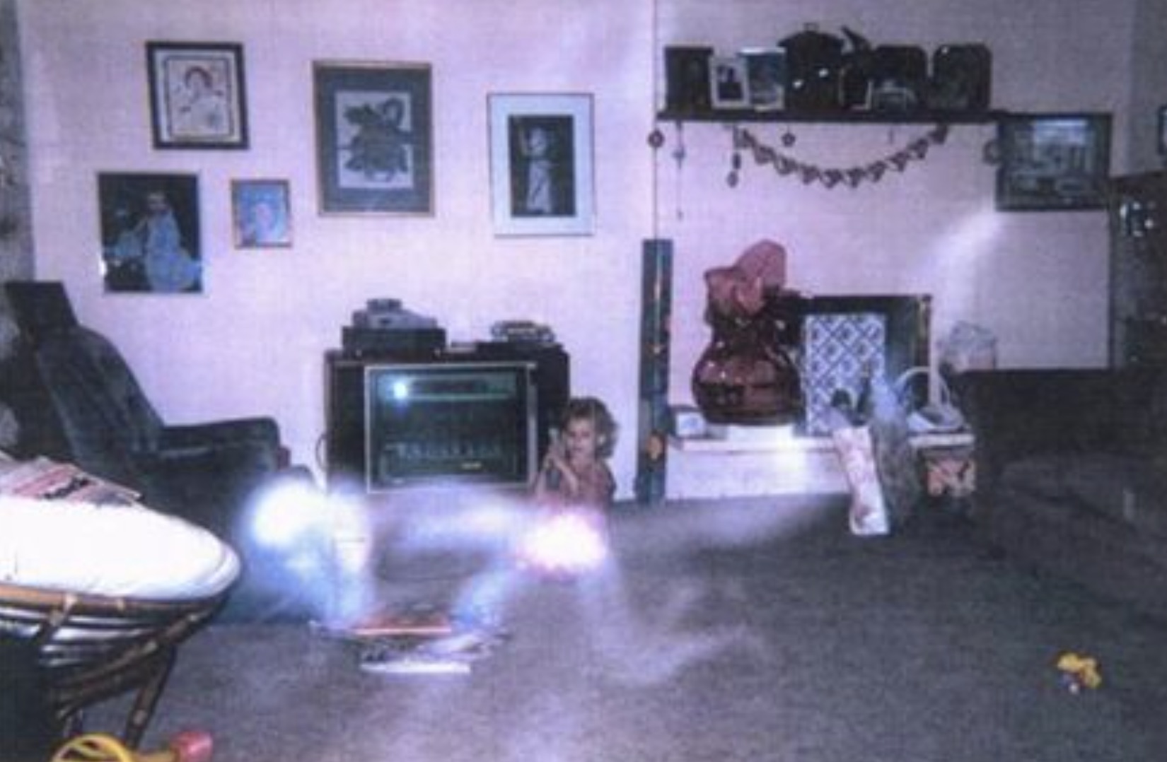 Otec odfotil svoju malú dcéru, ako sa hrá v obývačke, a až neskôr uvidel plaziacu sa postavu