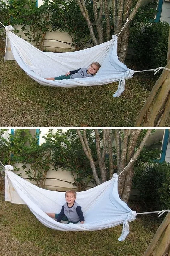 Vždy som chcela mať na dvore hojdaciu sieť, aby som sa mohla hojdať. Ale zabudnite na kúpu tých drahých druhov. Namiesto toho stačí zavesiť pevnú plachtu.