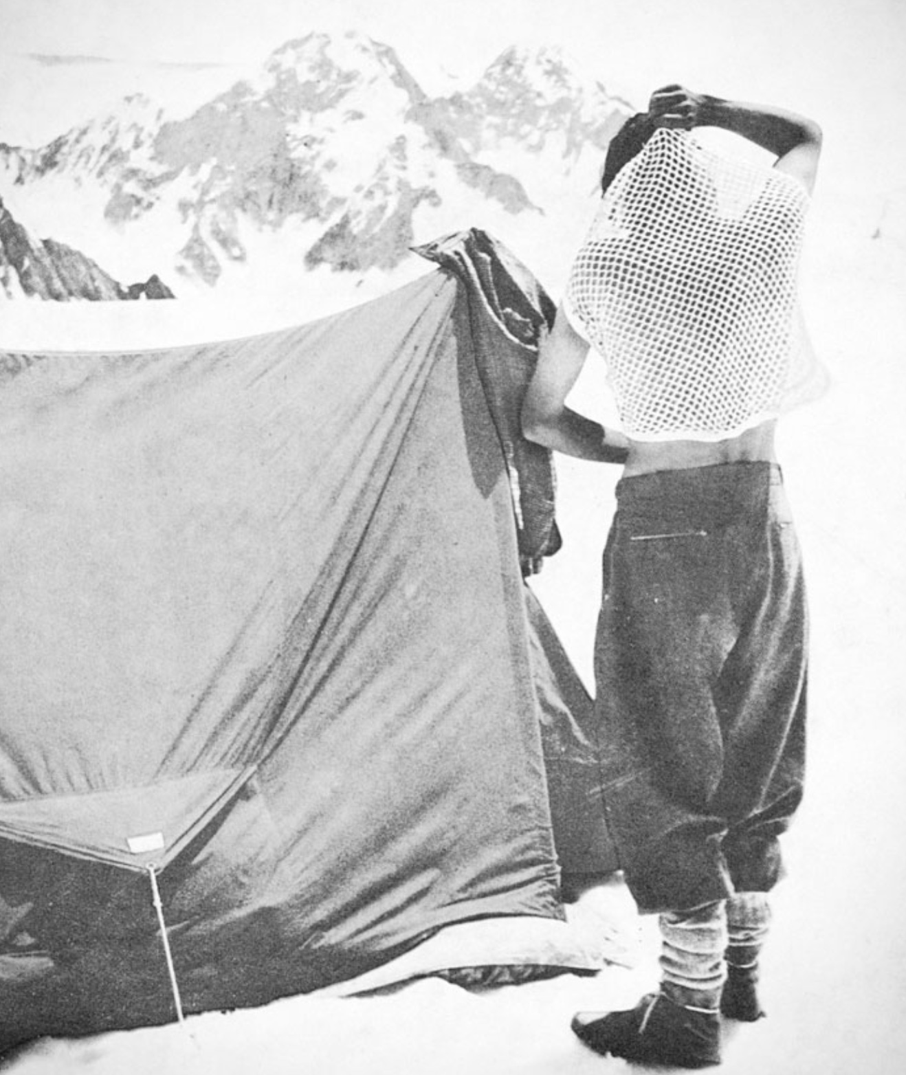 Sieťovaná „zdravotná košeľa“ použitá počas expedície na Mount Everest v roku 1953. Umožňovala voľnejšie prúdenie vzduchu