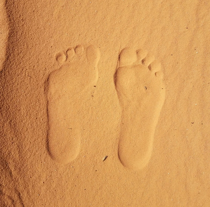 „Moje stopy v piesku. Môj mozog nedokáže túto fotku správne spracovať.“