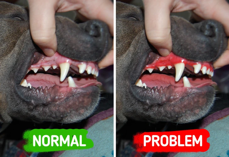Dobré zdravie ústnej dutiny u psov vyzerá ako ružové ďasná, biele zuby a žiadne usadeniny zubného kameňa. Ak teda psovi sčervenajú ďasná, môže to znamenať problém so zubami.