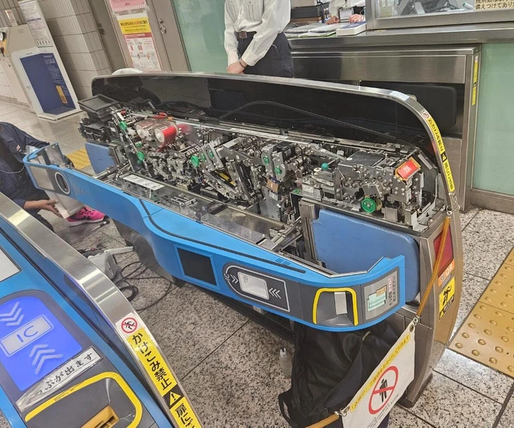 „Vnútro automatu na lístky v japonskom metre“