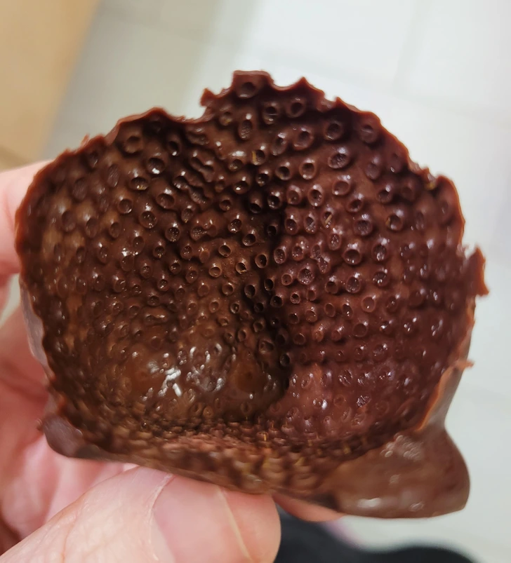 „Jahoda v čokoláde bez jahody, pohľad zvnútra“