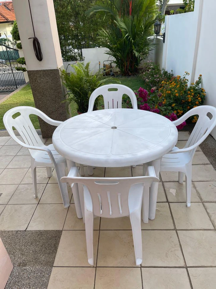 „Biely vonkajší stôl a stoličky, ktoré mal každý v 90. rokoch.“