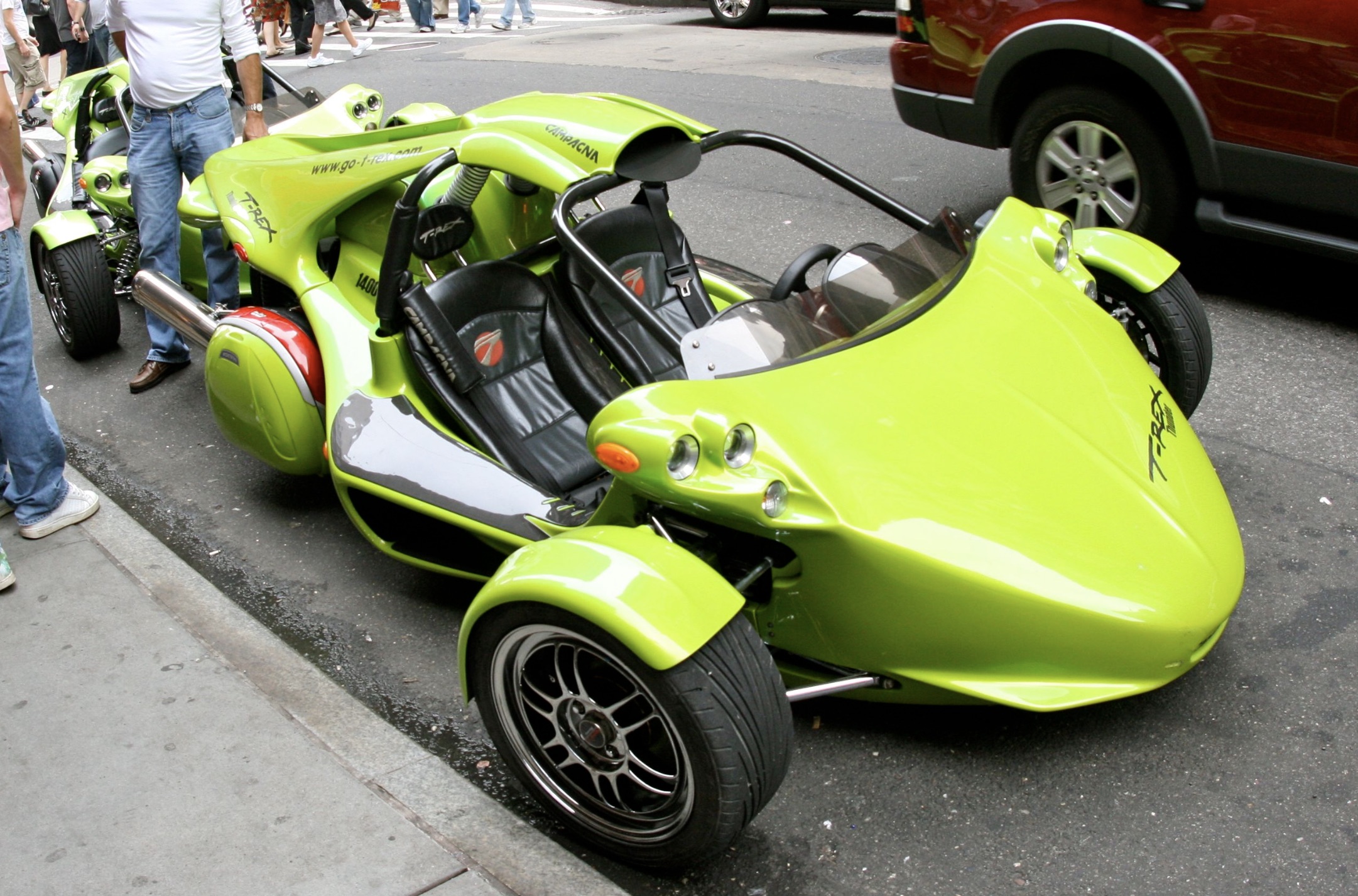 Trojkolka značky Elio Motors. Navrhované trojkolesové uzavreté vozidlo s tandemovými sedadlami a vysokou spotrebou paliva, hoci sa nevyrába sériovo