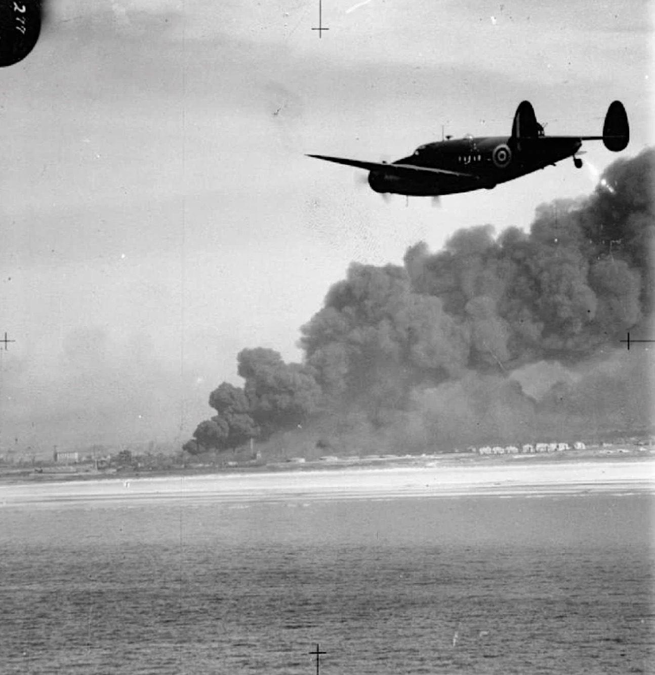Lietadlo RAF Lockheed Hudson počas evakuácie z Dunkerque. Máj 1940