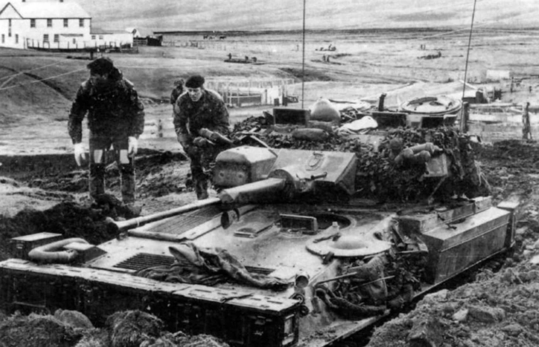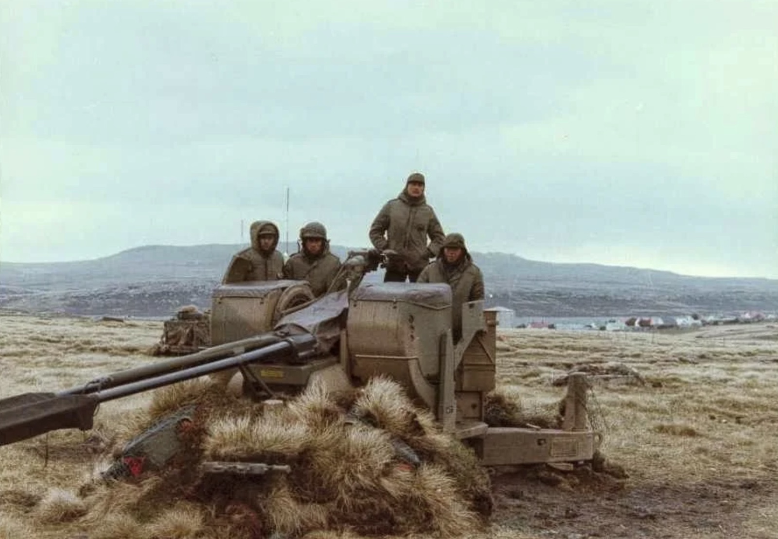 Argentínski vojaci so samohybným delom. Falklandy, 1982