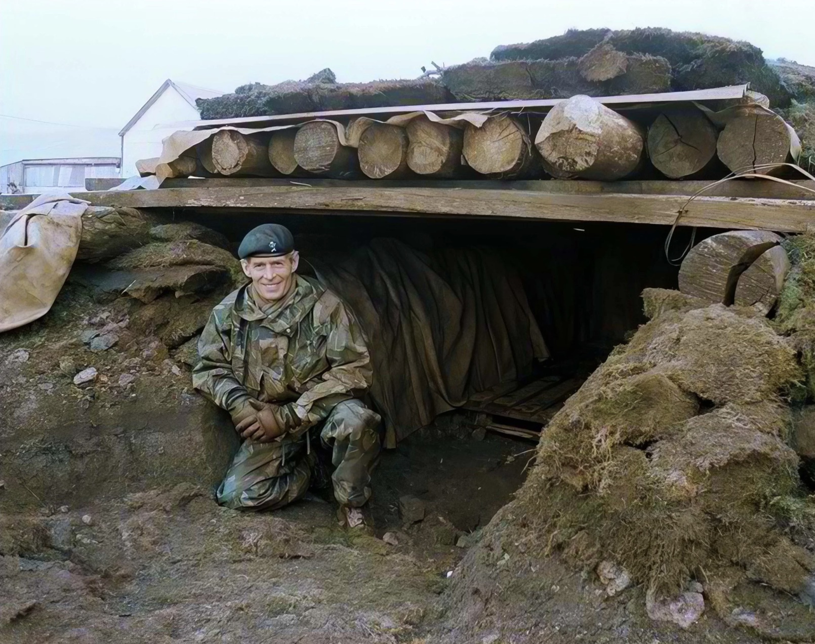 Kapitán Les Peacock s puškami gurkha. Falklandy, 1982