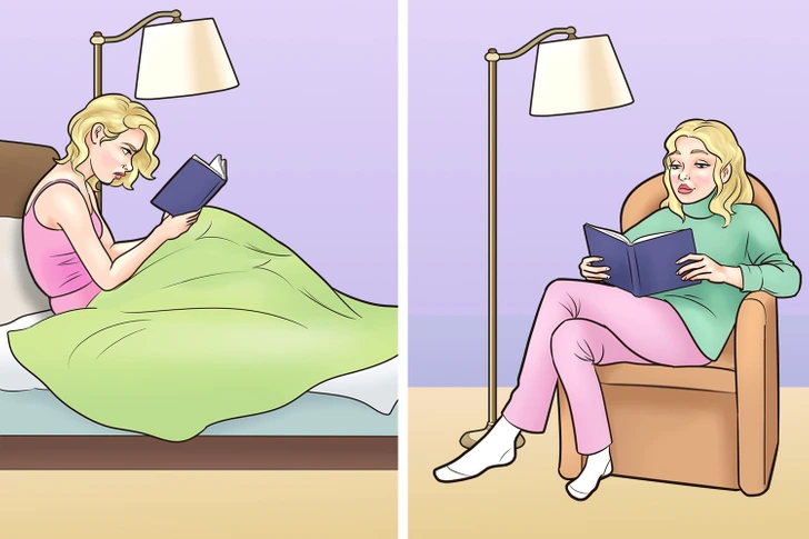 Zvyk prečítať si pred spaním niekoľko strán svojej obľúbenej knihy môže viesť k stuhnutiu vašich ramien a chrbta. Keď sa nakloníme pri čítaní v posteli, spôsobuje to napätie v chrbtici a svaloch v dolnej časti chrbta, čo vedie k bolestiam. Ak vám čítanie knihy pred spaním pomôže uvoľniť sa po náročnom dni, investujte do kresla s dobrou oporou chrbtice.
