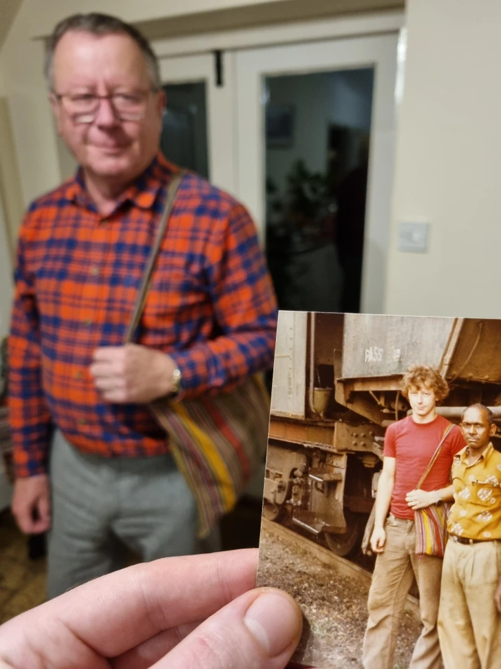 „Môj otec s rovnakou taškou, akú mal pri cestovaní po Indii v roku 1982.“