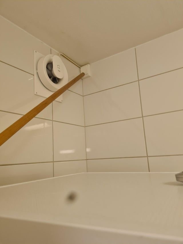 „Vypínač odsávacieho ventilátora v rohu stropu za stohovanou práčkou a sušičkou, na ktorého zapnutie potrebujete dlhú tyč.“
