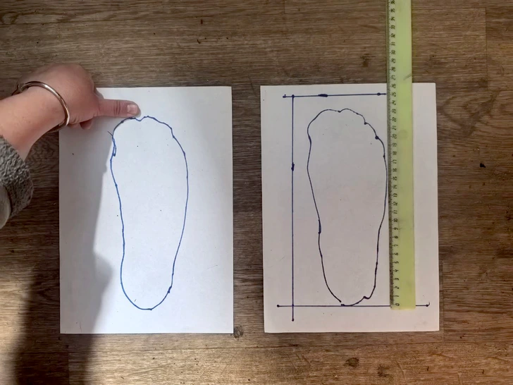 Ako si teda zmeriate nohu? Postavte sa na kus kartónu alebo papiera (dôležité je, aby sa vám noha na kartón alebo papier úplne zmestila). Nezabudnite, že musíte stáť tak, aby bolo chodidlo čo najrovnejšie. Obkreslite chodidlo fixkou, priložte palec k obrysu palca a urobte značku. Podobnú značku urobte aj na vnútornej strane chodidla. Tento priestor vám poskytne potrebné pohodlie.