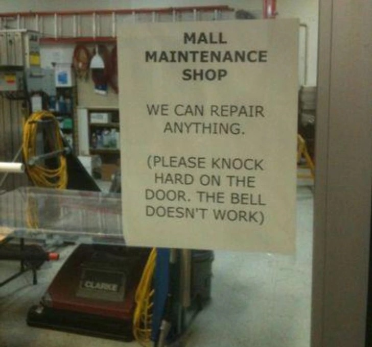 “Dokážeme opraviť čokoľvek. Prosím, zaklopte silno, zvonček nefunguje.” Obyčajný zvonček… jediná slabina mechanika!