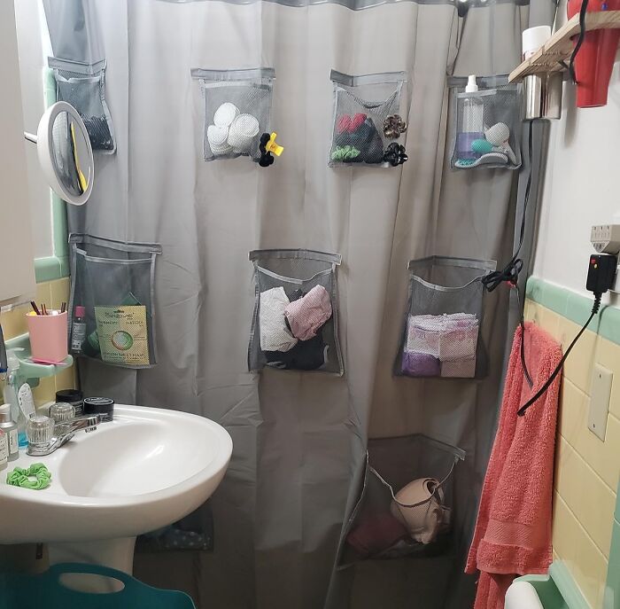 Vďaka tomuto geniálnemu sprchovému závesu s vreckami sa úložná kapacita vašej sprchy vyrovná každému