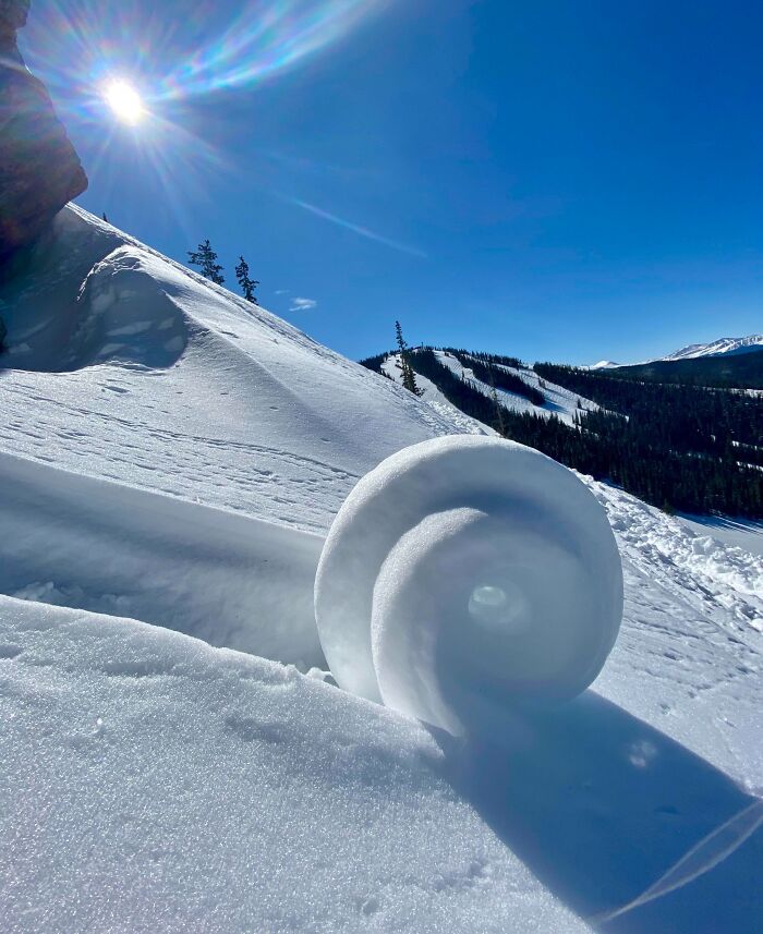 Fenomén snehových válcov v Keystone, Colorado. Známy aj ako Snownuts