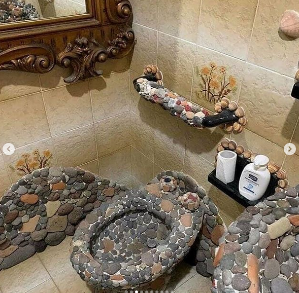 Ak by ste niekedy chceli mať toaletu na mieru, dúfam, že niečo také neurobíte. Toaleta pokrytá kameňmi nepoteší žiadnu zadnicu. Nie, ďakujem. Myslím, že budem musieť ísť so svojím „podnikaním“ inam.