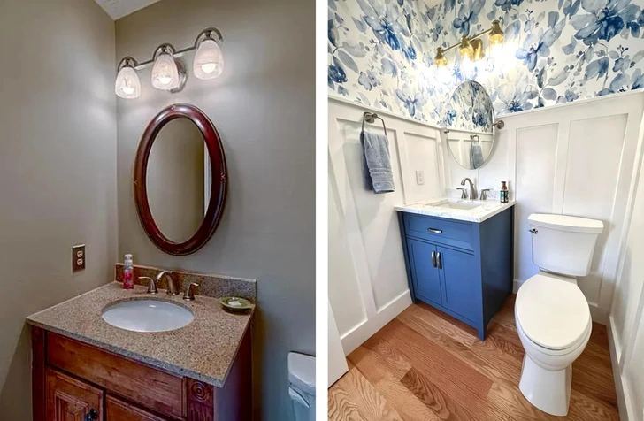 “Aktualizácia práškovej miestnosti: pred a po. Moja manželka si myslela, že stará miestnosť je tmavá a nepáčil sa jej štýl. Skutočne ju premena rozjasnila”