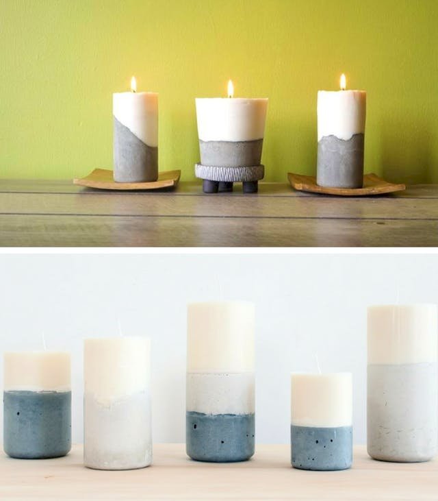 Po vytvrdnutí vosku odrežte plastovú nádobu a betón prebrúste, aby bol hladký. Môžete vyskúšať aj rôzne vrstvy betónu s rôznymi farbami, ako je znázornené na spodnom obrázku.