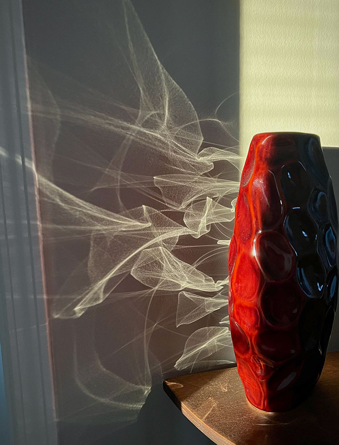 Spôsob, akým sa slnečné svetlo odráža od mojej vázy, spôsobuje, že vyzerá ako dym