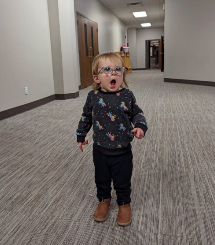 9. Prvá reakcia dievčatka na jej nové okuliare, vďaka ktorým vidí ľudí a predmety okolo seba