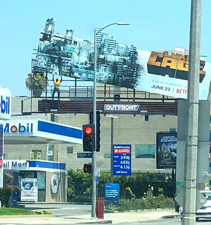11. Tento billboard Luka Cagea drži Luke Cage – ten je známy ako Power Man z Marvelu