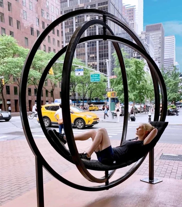 8. “Stolička Etazin”, ktorú študent navrhol počas štúdia bola reálne umiestnená na Manhattane