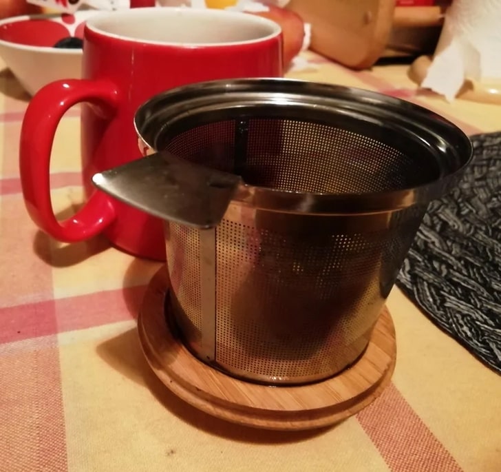 6. Súprava čajových šálok s vrchnákom, ktorý sa po lúhovaní zmeni na držiak na sitko