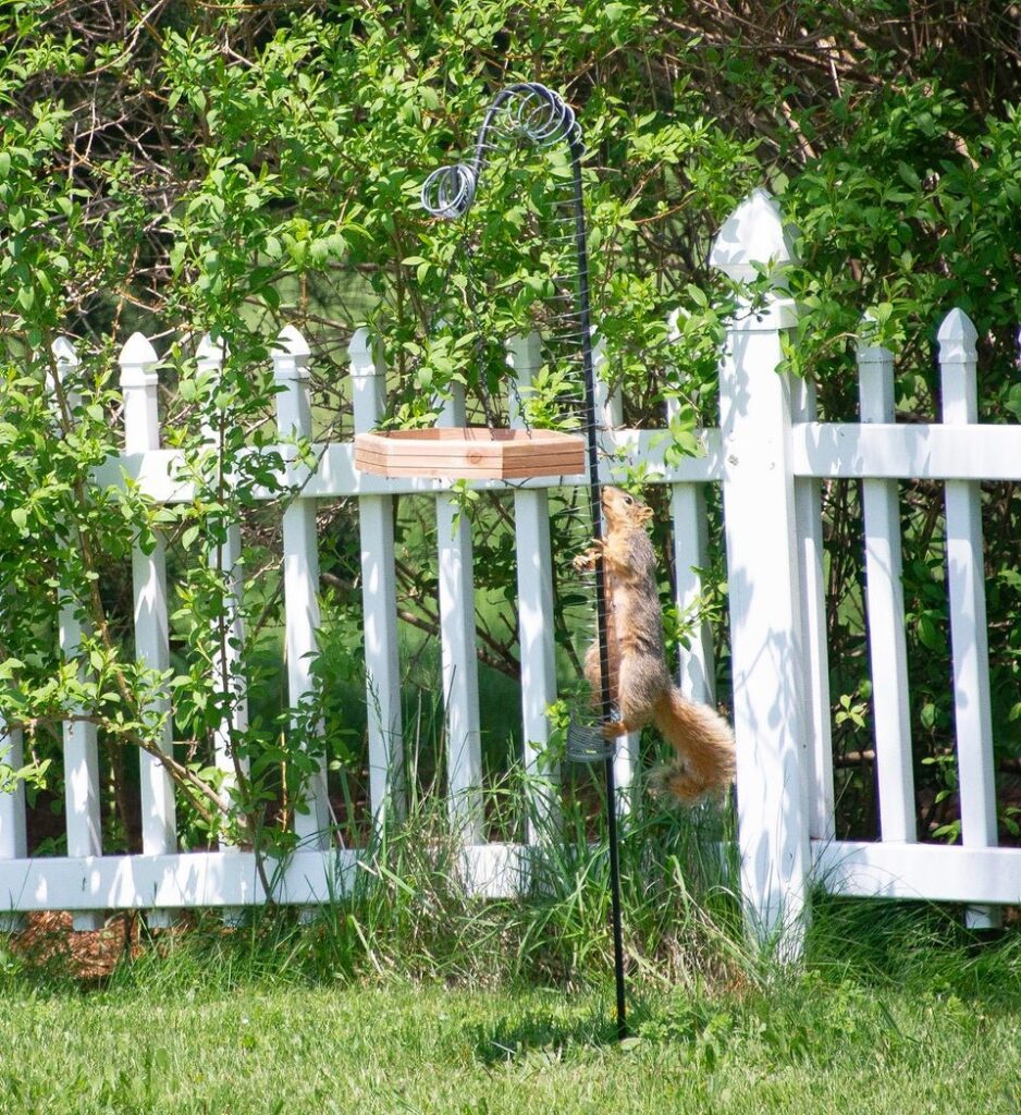 Ako ochránite kŕmidlo pre vtáky pred útokom veveričiek? Zrejme je to také jednoduché. Na tyč krmítka dajte šnúrku a veveričky naň nebudú môcť vyliezť. Ocenenie tomu kto to vymyslel, ha, ha!