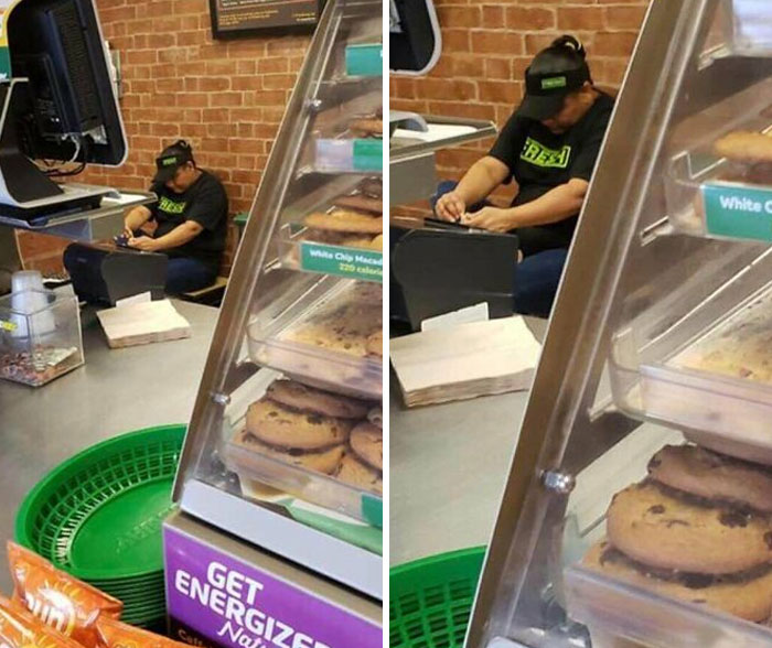 Zamestnankyňa reťazca Subway si za pultom strihá nechty na nohách. Ako čerstvé