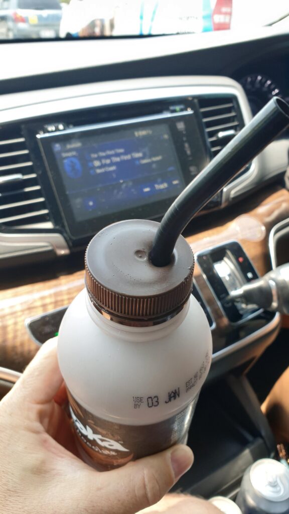 Pri pití nápojov vo fľašiach v aute použite vreckový nožík na vytvorenie otvoru pre slamku.