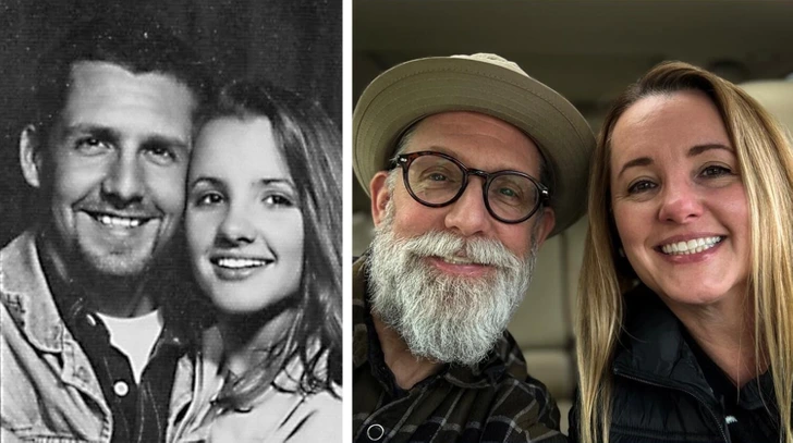 „Moja manželka a ja pred 13 rokmi a teraz.“