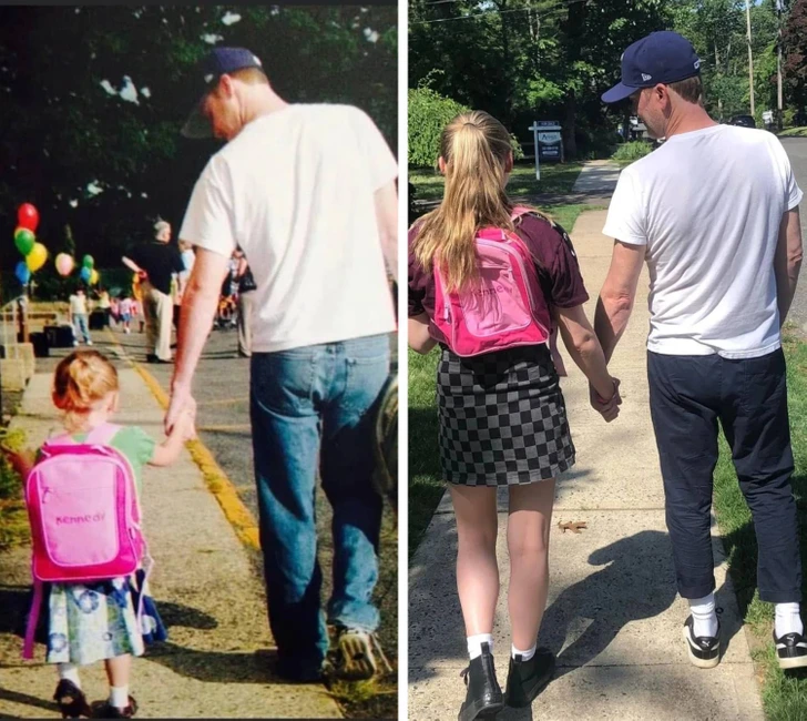 „Prvý a posledný deň mojej dcéry v škole.“ Je to ten istý batoh?