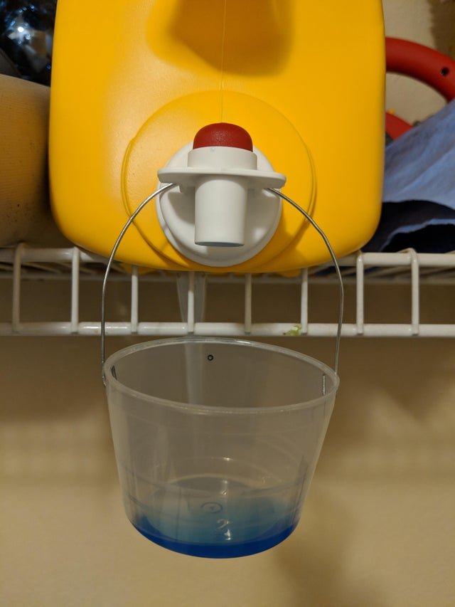 Použite drôt z čínskych nádob na pranie, aby ste zabránili kvapkaniu pracieho prostriedku a jeho vytečeniu na všetky spotrebiče! To je skvelý nápad.
