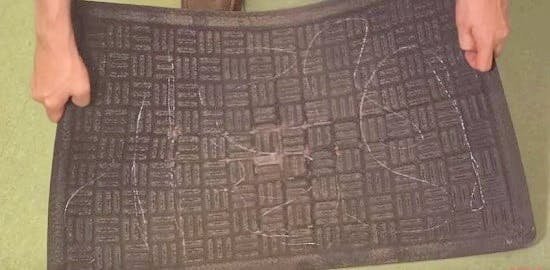 Zabráňte tomu, aby sa podložka kĺzala po podlahe, a to tak, že na jej spodnú časť pridáte niekoľko riadkov horúceho lepidla.