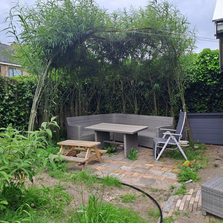 “V decembri minulého roka som vyrobil živý altánok z približne 80 vŕbových výhonkov. Po pol roku sa mu darí (a každý rok sa bojím orezávania).”